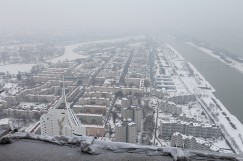 Ist man einmal fast auf der Spitze dieses Donaustädter Riesen gewesen, so frei, fast ungeschützt, in Kälte und Wind, umgeben von dieser unendlichen Ruhe, fast wie auf einem riesigen Spielplatz, dann hofft man, dieses Gefühl für immer festhalten zu können. Umso mehr habe ich auf die Besucherterrasse gebaut, die mich dann leider mit ihrem Aquarium-Style ohne Panorama-Blick ein wenig enttäuschen sollte.