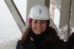 Klar wollte ich! Also bin ich Mitte Jänner 2012 zum allgemeinen Treffpunkt erschienen. Was ich tun musste? Meinen Helm aufsetzen (Sicherheit geht vor Schönheit ;)), den anderen folgen, beim Anblick des Außenaufzuges (Mit Löchern drinnen! Überall, auch unten. Und ich hab ja Höhenangst…) nicht den Mut verlieren (so verkrampft bin ich noch nie zuvor in einem Aufzug gestanden) und oben nicht über Kabel und andere Hindernisse stolpern. (Dass ich dann doch auf einer Eisplatte ausgerutscht und ein Stück dahin geschlittert bin, ich eine andere Geschichte …)